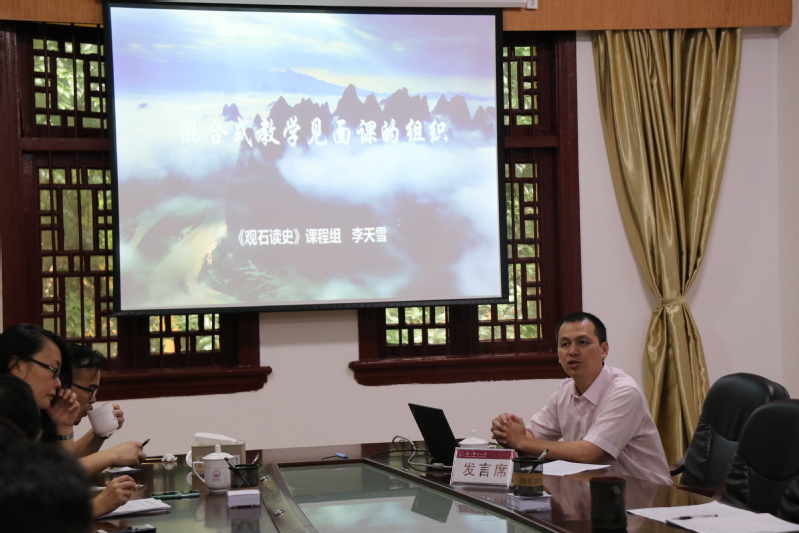 2019年5月17日,由我院主办,教务处、教师教学发展中心协办的“探讨优秀传统文化资源的开发、转化途径与网络课程教学方法”的教学沙龙,在王城校区文旅学院212会议室顺利举行。本次教学沙龙由我院《观石读史》课程负责人唐凌教授主持,课程组主讲教师李天雪教授和江田祥副教授分别作主题发言,课程组彭家威、钟珂二位老师,文旅学院的付延慧、袁俊杰、沈继松老师及本科生共30余人出席了此次教学沙龙。