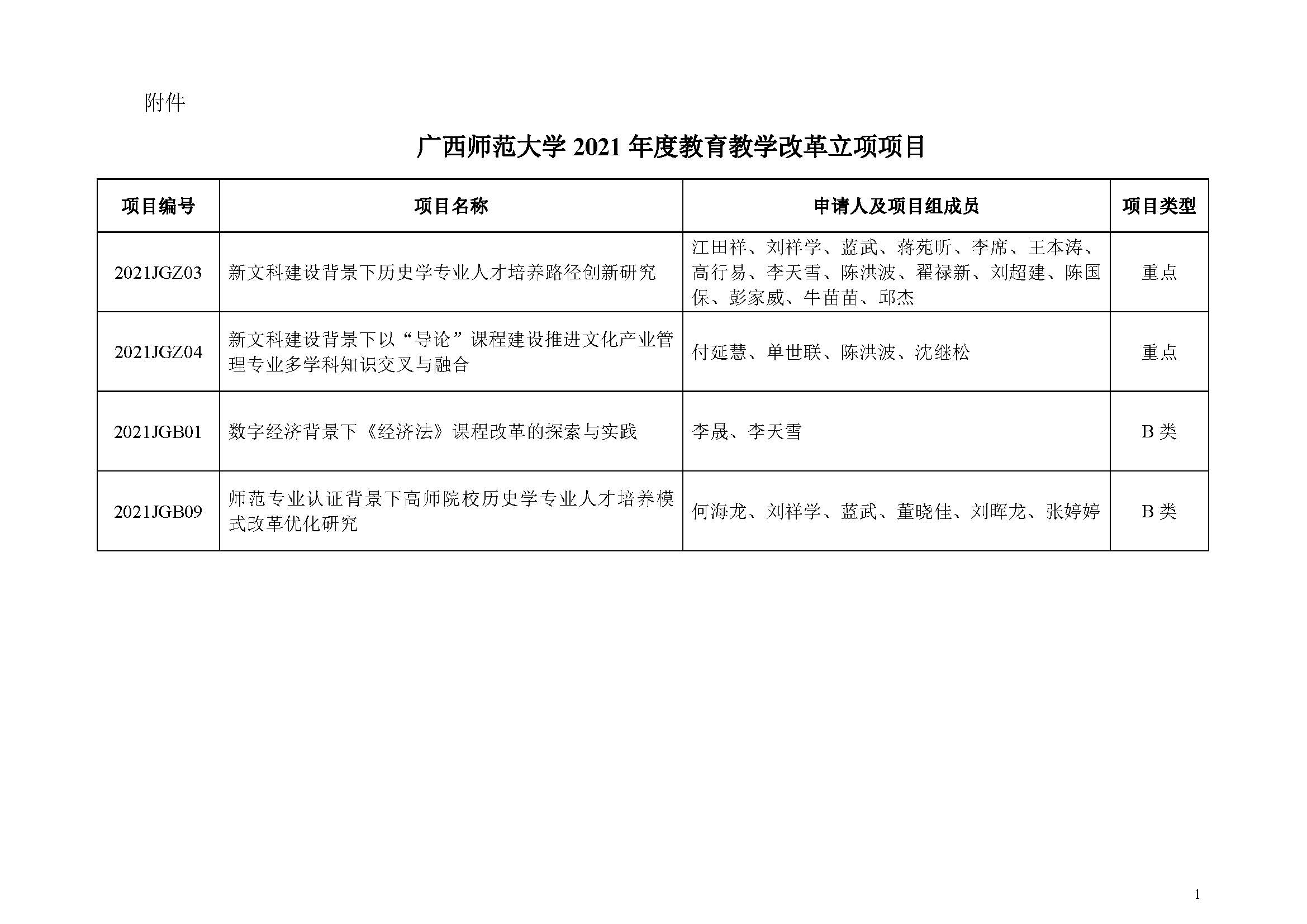 经学校组织专家评审,我院江田祥老师、付延慧老师、李晟老师、何海龙老师申报的广西师范大学2021年教育教学改革工程项目获批立项,其中重点项目2项,一般项目B类2项,具体名单如下。