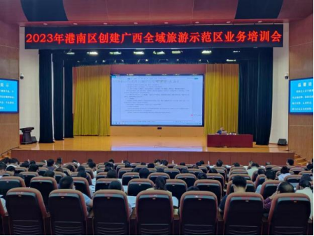 为确保港南区成功创建广西全域旅游示范区,动员全区上下凝心聚力、坚定信心,发挥港南区特色旅游对经济的拉动作用,4月18日,历史文化与旅游学院教工第二党支部陆军教授受邀参加2023年港南区创建广西全域旅游示范区动员大会暨业务培训会议。在业务培训会上,陆军教授做创域专题培训,解读了创建标准和开展业务培训。港南区党政领导、各部门领导及业务骨干、创域办全体成员、港南区涉旅企业200余人参加培训会。培训会结束后,陆军教授深入港南区各景区景点及企业现场指导创建工作,一同参与调研的有港南区文体旅局局长、副局长及旅游骨干。