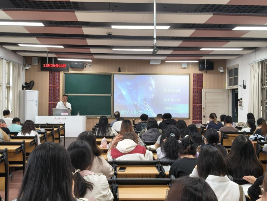 主讲人张华勇先生现任民进广西区委委员、民进广西区委文化委员会主任、桂林市政协委员等职,他长期深耕文旅多个领域,有着丰富的实践经验并取得了显著成就,是一位极具影响力的企业家。在讲座中,张华勇先生首先对文旅产业的数字化转型浪潮进行了总体介绍,说明了新技术发展在当今时代的应用。随后,他依次讲解了数字化转型的核心引擎和数字客服模型并结合具体实例,让在场师生对新科技在文旅产业中的发展有了初步了解。他指出,现在及未来20年仍是“内容为王”的时代,要重视专利,提升版权意识;数字人从1.0的视觉沉浸到2.0的认知交互,从规模化到大模型,都是市场化需求的生动体现。与此同时,他还分享了360全球天地包裹式球幕剧场、悬挂式飞行影院、裸眼3D折幕等代表性数字技术运用。最后,张华勇先生总结了如今数字文旅产业发展趋势,并向同学们表达了将所学融入数字文旅实践的殷殷期望。