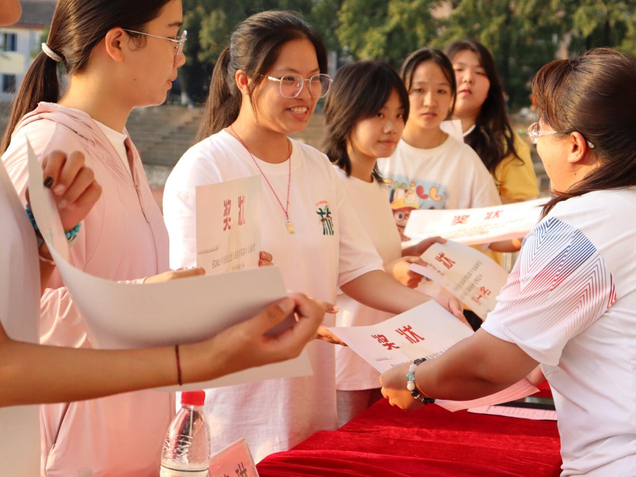经过一天的激烈竞赛,各比赛项目圆满结束。下午各赛程结束后,激情四射的跑旗仪式将本次运动会推向尾声。现场由历史文化与旅游学院党委副书记黄琳老师和物理科学与技术学院党委副书记曹庆老师分别宣读本次田径运动会各学院学生团体总分前三名和精神文明评比前三名获奖名单,并由两学院党委领导班子为获奖班级代表进行颁奖。