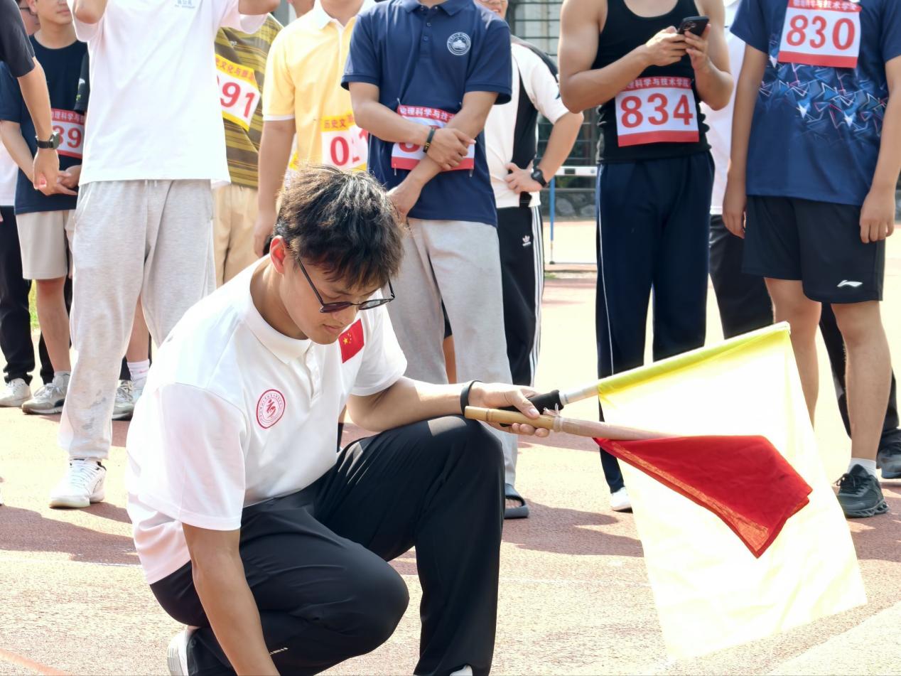 本次运动会共设立100米跑步、跳高、跳远、团体接力等多个比赛项目。竞赛场上,田赛运动员各展所长,处处是力量与技巧的碰撞。径赛运动员则用速度与耐力书写拼搏,他们迈着矫健的步伐奋力向终点进发。团队接力赛更是点燃全场热情,接力棒的传递不仅仅是简单完成比赛,更是团队精神的展现。两院运动员们在运动场上的拼搏传递着“更快、更高、更强、更团结”的奥林匹克精神,展现新一代青年的活力与激情。运动会期间,两学院团委学生会工作人员、学生志愿者们穿梭在各个赛场,切实做好后勤保障工作,确保比赛顺利进行。