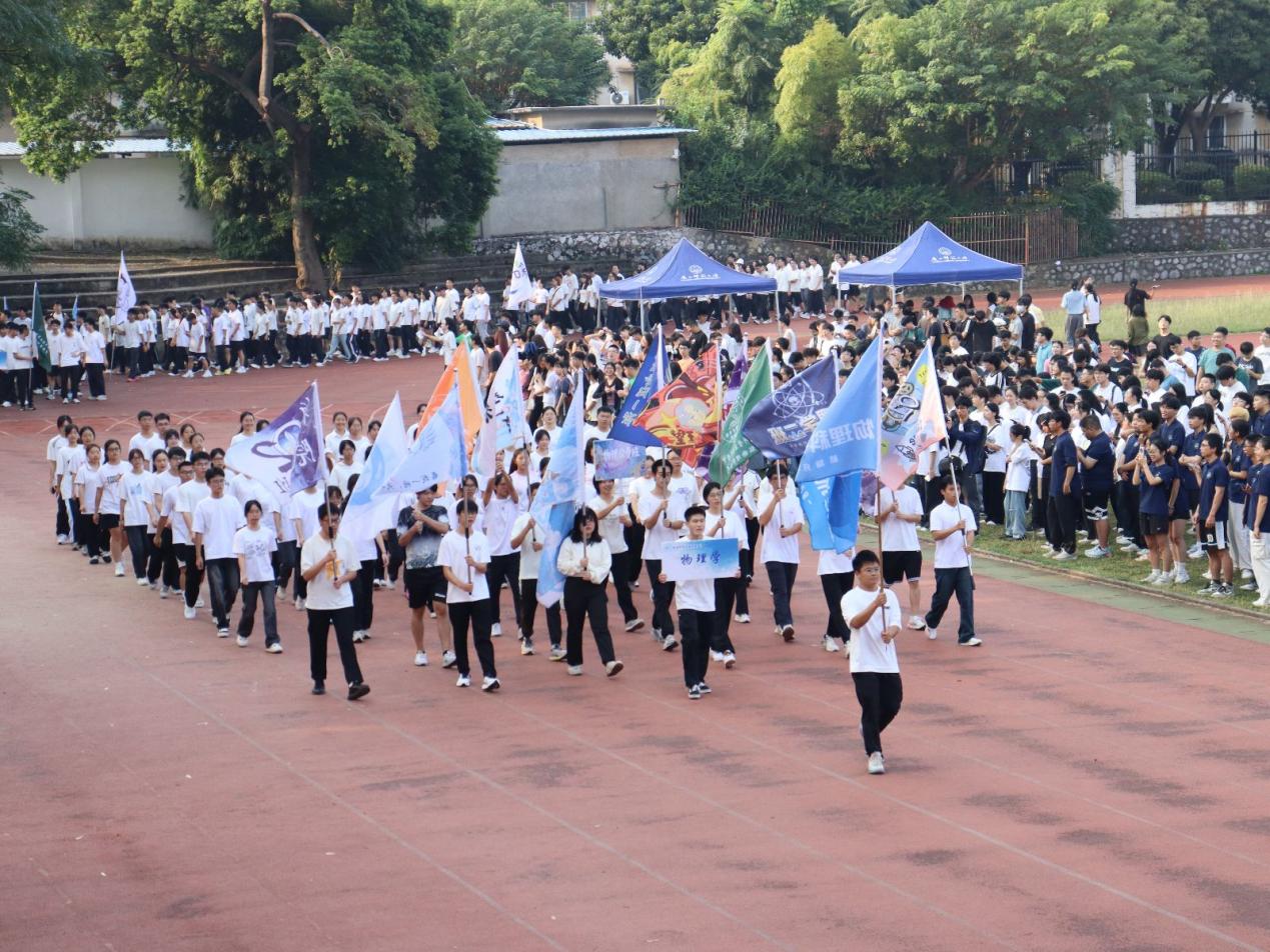 为推进“体育强国”落地校园,学习贯彻习近平总书记关于体育的重要论述,强健学子体魄,10月12日,历史文化与旅游学院、物理科学与技术学院在育才校区田径场联合举办2025年田径运动会。两学院党政领导班子、教师代表及近2000名学生代表齐聚运动场,共同见证这场运动盛会。