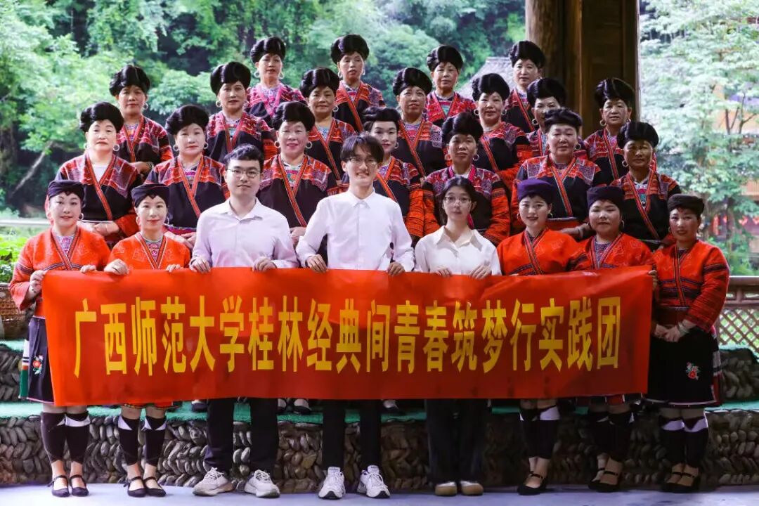 广西师范大学桂林经典间青春筑梦行实践团实地探访合影