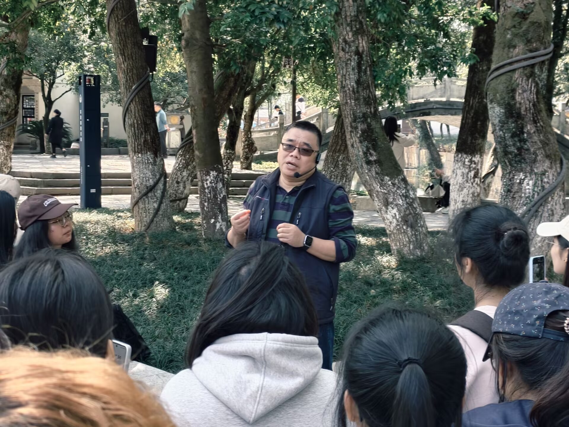 学院何海龙老师充分利用现场教学的优势,在关键景点为同学们进行了生动的延伸讲解。在“飞来石”旁,何老师讲述了围绕这块巨石所衍生的民间传说与历代文人墨客的题咏,揭示了其作为水利工程守护神的文化象征意义,让抽象的秦汉史、水利史知识变得鲜活可感,充分发挥“行走的课堂”育人实效。