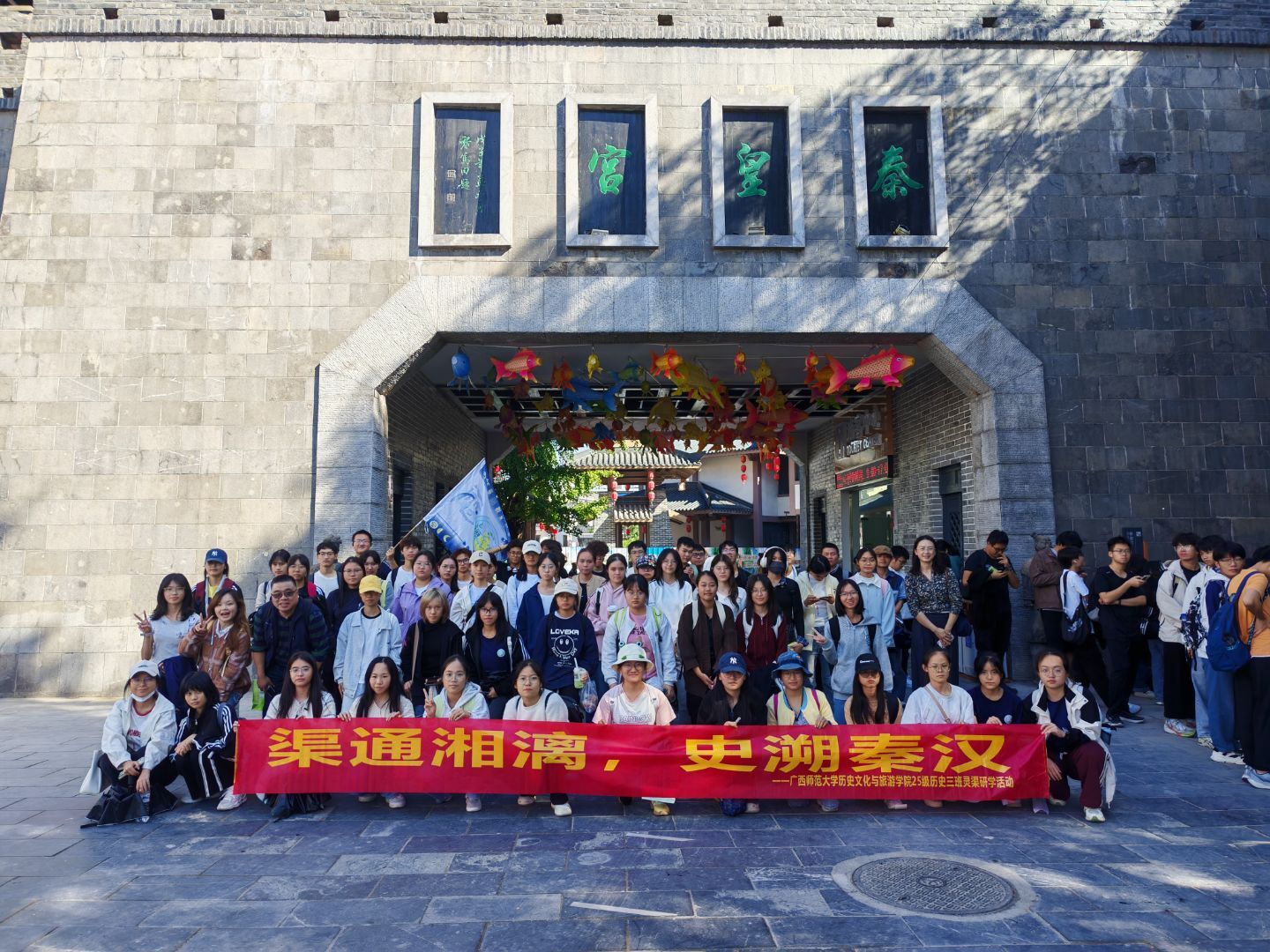 为深化历史学专业学生对中华优秀传统文化的理解,推动理论与实践深度融合,2025年11月15日,历史文化与旅游学院组织2025级历史学专业全体学生,前往世界文化遗产——桂林兴安灵渠景区,开展了一场以“踏寻千年古渠,赓续历史文脉”为主题的沉浸式研学实践活动。本次活动旨在通过实地考察,让同学们亲身感受古代水利工程的智慧结晶,追寻岭南开发的历史足迹,并在红色教育基地中淬炼思想,筑牢信仰之基。