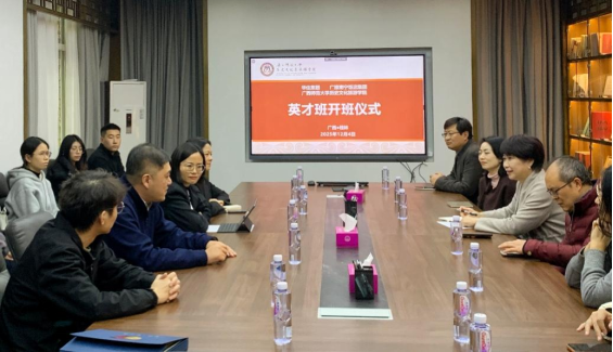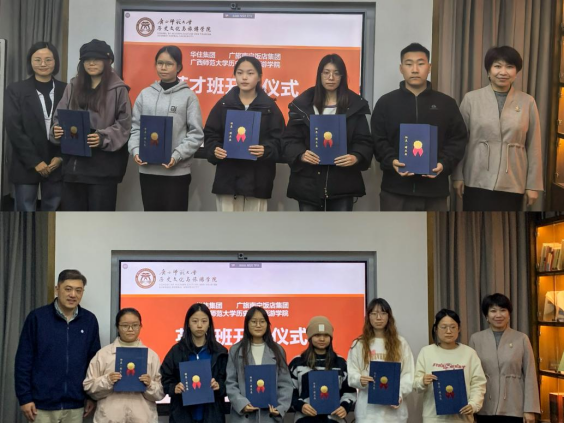 2025年12月4日,广西师范大学历史文化与旅游学院携手广旅南宁饭店集团、华住集团,在王城校区会议室隆重举行“英才班”开班仪式。学院领导、专业教师代表,以及广旅南宁饭店集团、华住集团等企业嘉宾,与“英才班”全体学生共同见证这一重要时刻。