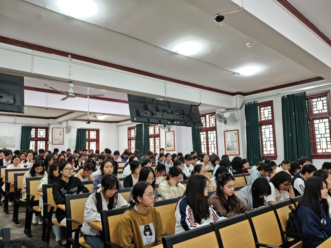宣讲会上,方春露老师对以“奖、助、勤、贷、补、免”及入学“绿色通道”为主体的多元化资助体系进行了全面、细致的解读,并对学校教育发展基金会设立的各类奖助基金项目进行了介绍,确保政策宣传全覆盖。她详细讲解了家庭经济困难学生认定的具体流程与注意事项,指导有需要的同学规范完成申请,并初步介绍了各类奖助学金的评选标准与程序,强调资助工作“扶困”与“扶志”“扶智”相结合的理念。