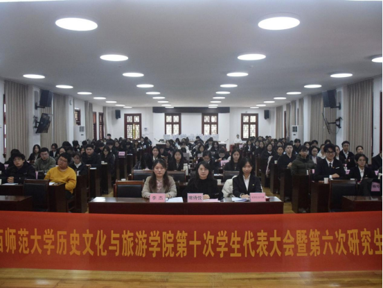 2025年12月14日上午,广西师范大学历史文化与旅游学院第十次学生代表大会暨第六次研究生代表大会在王城校区学术报告厅隆重召开。学院团委书记常诗悦、学院团委副书记李杰、校学生会与校研究生会代表以及学院全体学生代表、研究生代表共同出席了本次大会。