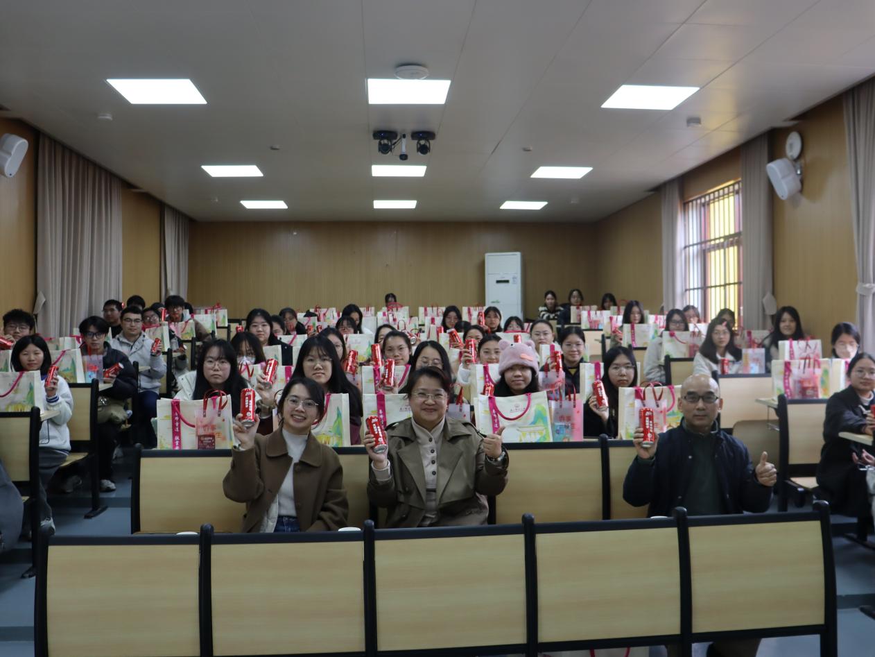 现场学子有序接过礼物,并与老师们合影留念,用镜头定格下真挚笑容与昂扬斗志。考研学子们备受鼓舞,纷纷表示将承载学院的温暖与期许,以笔为戈、从容应试,在青春答卷上挥洒才华,为实现人生理想与学术追求砥砺前行。