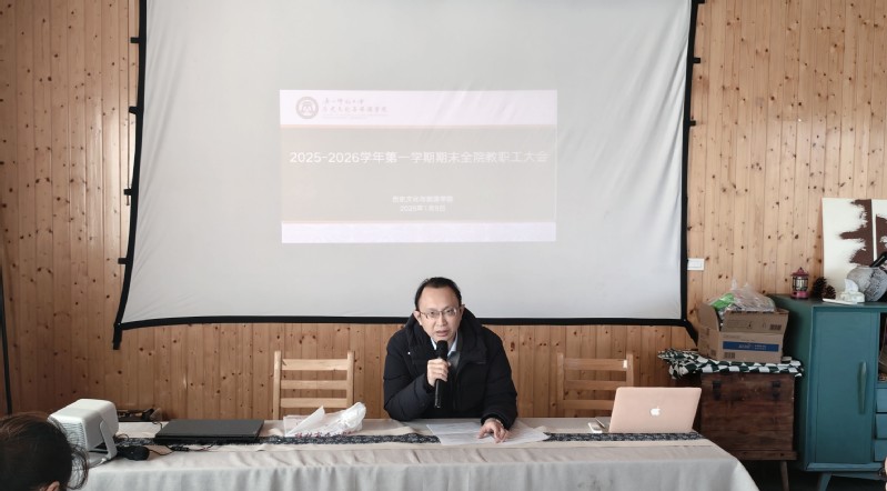 2026年1月9日上午,2025年历史文化与旅游学科建设研讨会暨2025-2026学年第一学期全院教职工总结大会顺利召开,全院教工80余人参加了会议。