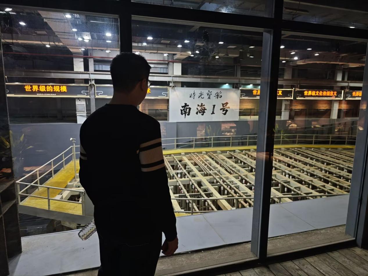 在广东海上丝绸之路博物馆,团队成员实地探访了以“南海Ⅰ号”为代表的宋代沉船遗址。通过观摩船模型,队员们直观了解了宋代造船技术的先进水平;在七大主题展区,透过“水晶宫”观测窗观察水下考古发掘现场,对水下文物保护工作的严谨性有了更深体会。