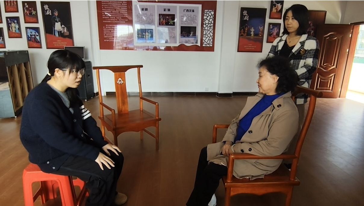 为深入理解戏曲中的家国情怀与传承现状,团队专访了桂林艺术学院的唐老师和桂林市戏剧创作研究中心一级演员何旭老师。唐老师从艺术教育角度指出,抗战戏曲中的爱国表达对当代学校思政教育具有重要借鉴意义。何旭老师结合多年舞台实践,讲述了在排演《破阵曲》等作品时的深切感悟:“传统戏曲的血脉里流淌着家国情怀的基因,每一次排演都是一场与抗战先辈的精神对话。”他还分享了推动桂剧与其他剧种融合创新的探索,展现了当代戏曲人从守正到创新的传承路径。
