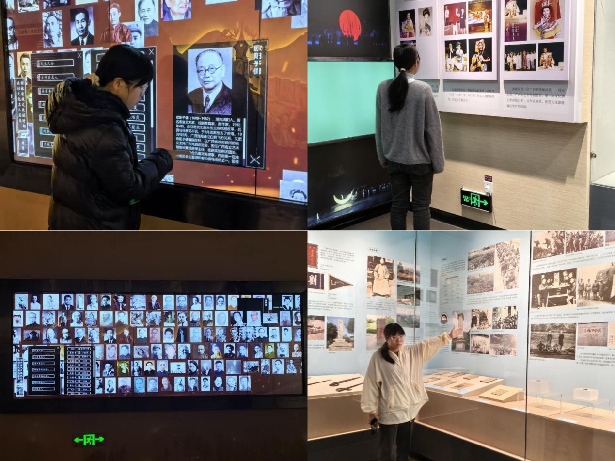 实践团先后参观了广西桂林博物馆、桂学博物馆及桂林抗战文化名人博物馆。通过观看抗战时期的演出海报、手稿和戏曲服饰,团队成员直观感受到当年戏曲工作者以舞台为战场、以艺术为武器的烽火岁月。抗战时期桂林戏曲运动空前繁荣,桂剧艺人通过改编或新编《破阵曲》《木兰从军》《梁红玉》等剧目,融入抗日救亡主题,使戏曲成为唤醒民众、凝聚民族力量的重要媒介。