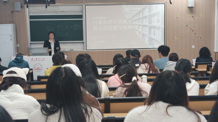 为深化我院旅游管理专业建设,拓宽师生学术视野,2026年3月5日晚,日本东洋大学梁春香教授应邀到我院为广大师生做了题为《日本东洋大学观光教育的发展与实践》的学术讲座。本次讲座在王城校区独秀楼102教室举行,由旅游管理系主任张燕教授主持。