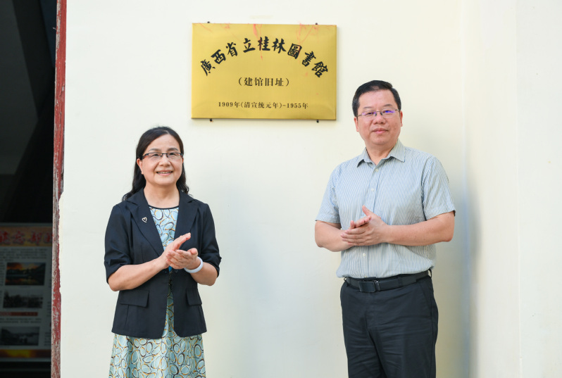 为纪念中国人民抗日战争暨世界反法西斯战争胜利80周年,传承中华民族在烽火中守护文化根脉的精神,推动红色文化资源从“沉睡”到“活化”的转化,近日,由广西师范大学历史文化与旅游学院党委、广西师范大学党委宣传部联合主办的广西省立桂林图书馆旧址揭牌仪式,在广西师范大学(原靖江王城旧址区域,即广西省立桂林图书馆始建地)隆重举行。广西师范大学党委书记贺祖斌与广西壮族自治区桂林图书馆馆长钟琼共同为旧址揭牌,桂林市委宣传部、桂林市文化广电和旅游局相关负责人,广西师范大学各职能部门代表、师生代表,以及广西桂林图书馆馆员代表齐聚一堂,共同见证这一串联起百年文脉与红色记忆的历史时刻。