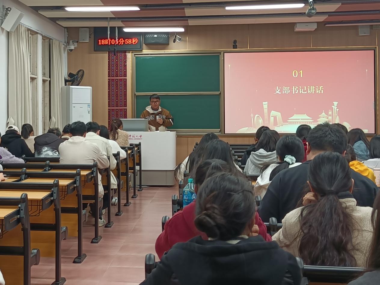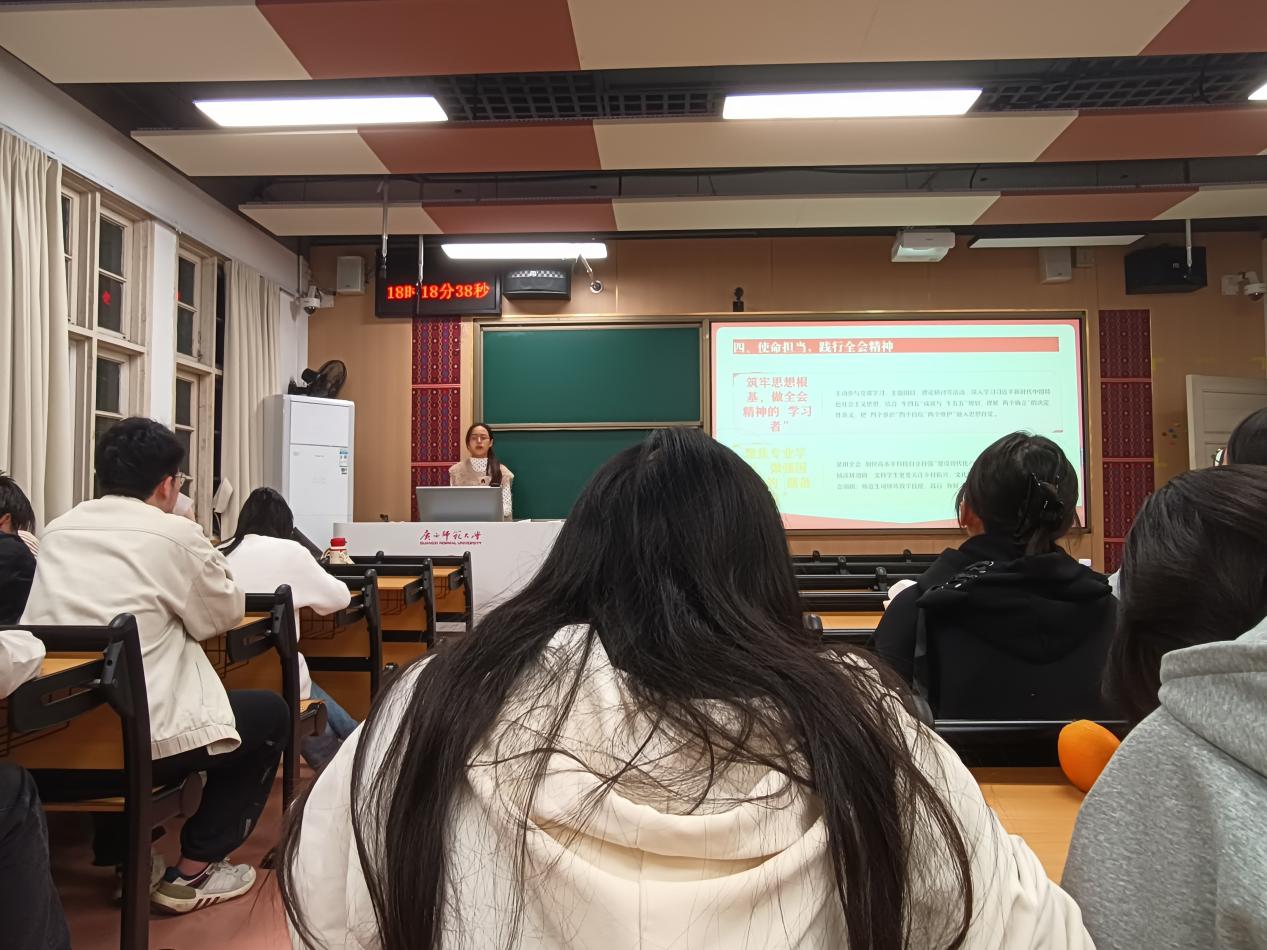 活动伊始,党支部书记王文友老师为全体成员讲授专题党课,他系统介绍了党的二十届四中全会的召开背景、重大意义及核心成果,深入解读了规划中“促进高质量充分就业”与“办好人民满意的教育”两大关键议题。他分析了新时代背景下历史学师范生面临的机遇与挑战,指出要夯实专业基础、提升运用数字技术赋能教学创新的能力、积极投身实践。