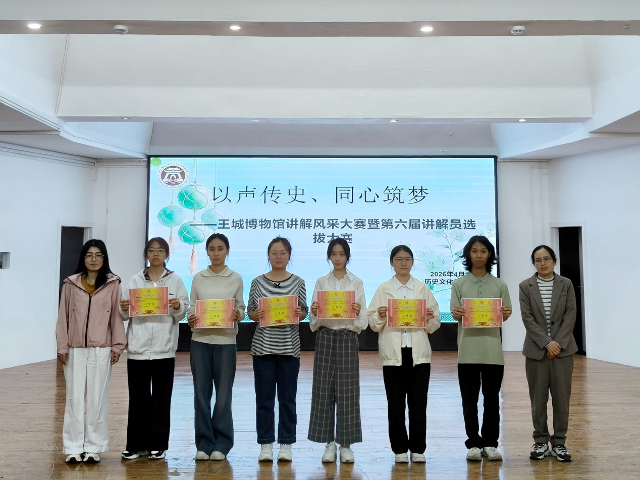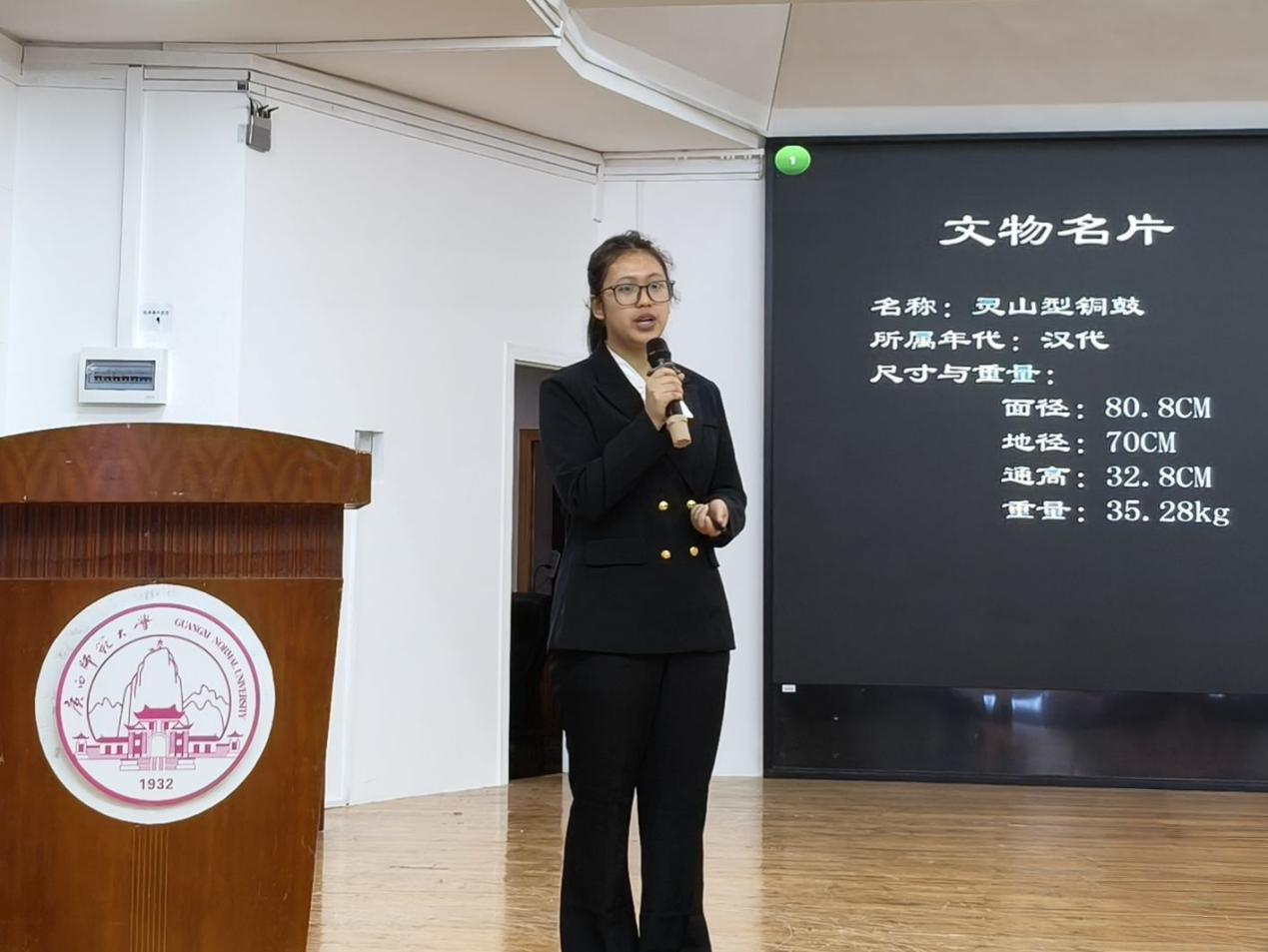 为传承“广西三月三”民族文化,弘扬中华优秀传统文化,2026年4月15日下午,历史文化与旅游学院联合王城博物馆在王城校区学术报告厅举办“以声传史 同心筑梦”讲解风采大赛暨第六届博物馆讲解员选拔赛。本次比赛特邀历史文化与旅游学院副院长刘莹老师、王城博物馆负责人王然老师、专业教师白丽群老师、学院辅导员贲国艳老师担任评委。