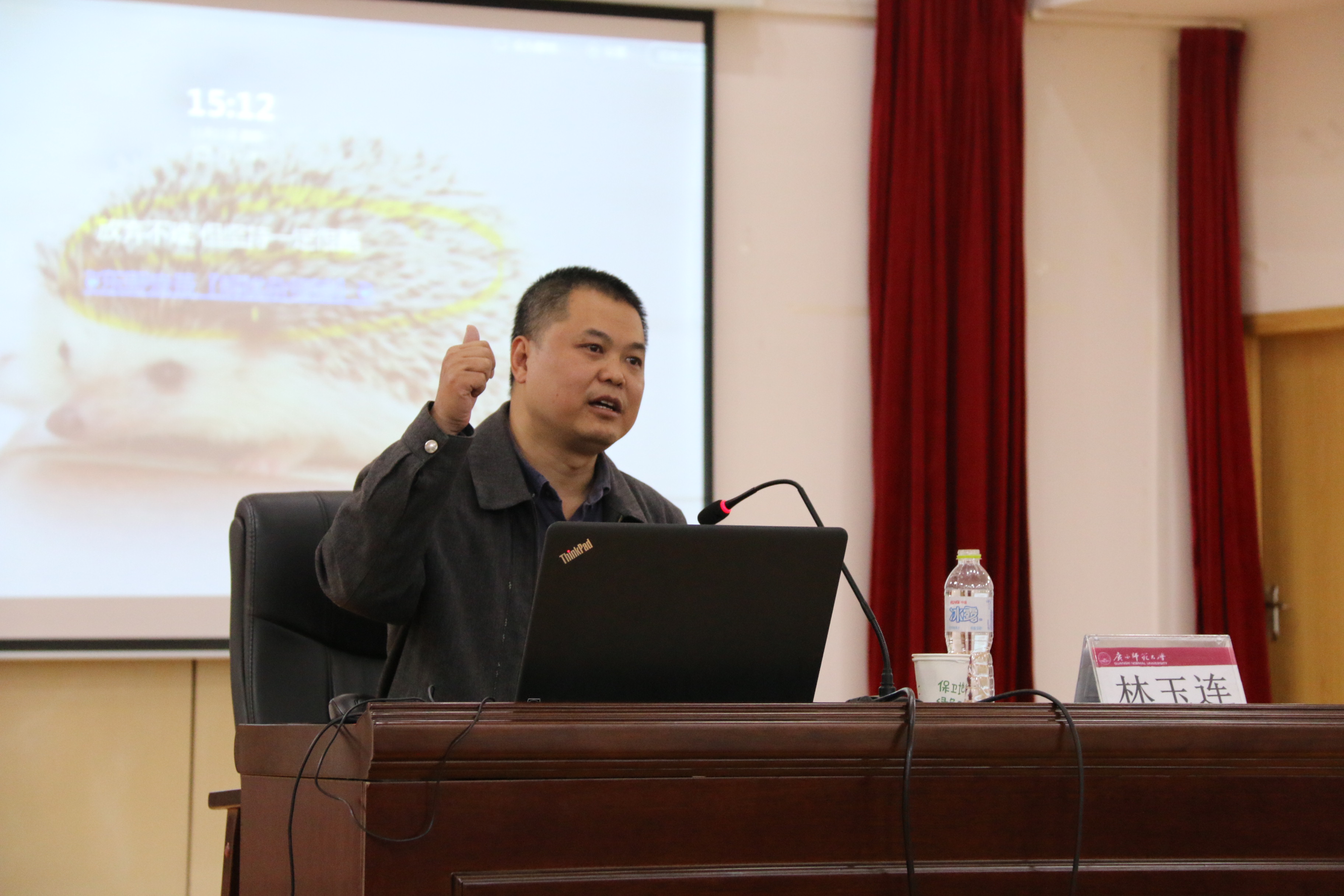 林玉连是桂林市教科所高中历史教研员,拥有丰富的一线历史教学经验,对课堂教学有独到的见解。林玉连教研员紧绕主题,结合自身丰富的教学经历和精深的教研能力,以严密的逻辑、通俗易懂的言语为在场的同学们进行了一次意义重大的精彩讲座。