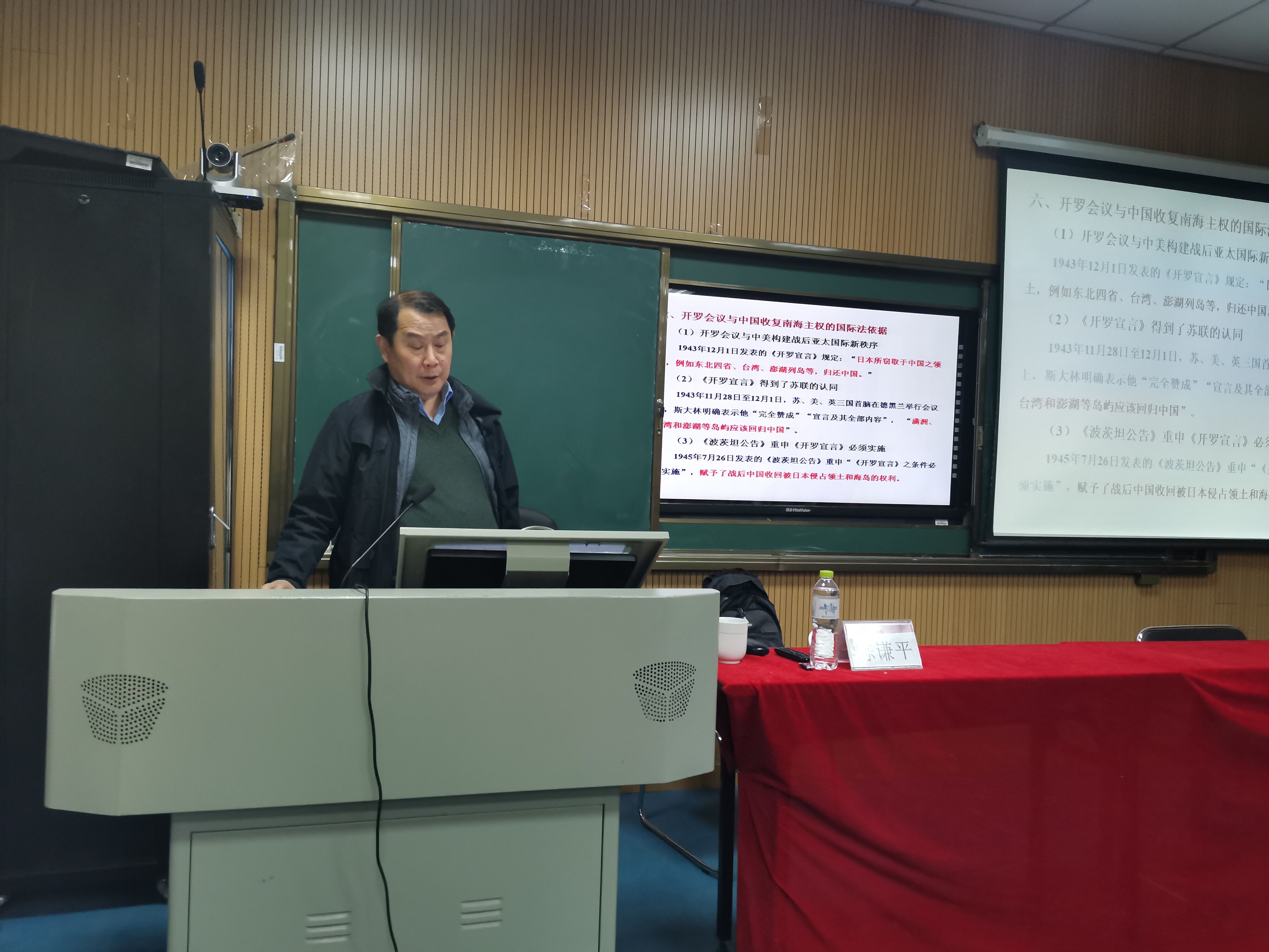 为了开拓学生视野,提高学院的学术水平,历史文化与旅游学院邀请著名民国史专家、南京大学陈谦平教授莅临王城校区,并于11月21日晚在王城校区第二教学楼103教室为学生们进行“二十世纪中国收复南海诸岛主权的历程”主题讲座。学院中国史硕士研究生与2019级历史学本科生参加本次讲座。