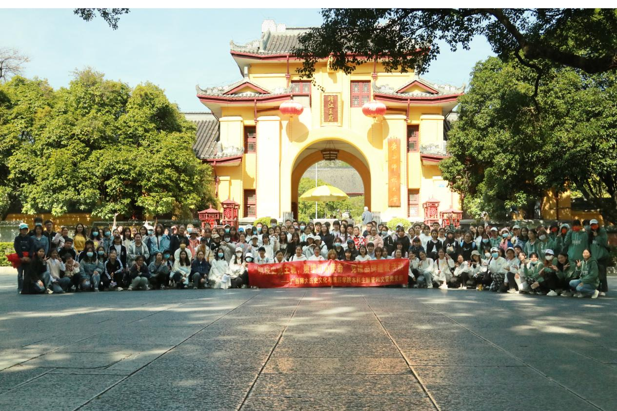 为了加强2021级新生对校园文化历史的了解,我院本科生旅管文管党支部秉承“传承校史、弘扬校风”的初心,组织开展“明校史览王城,赓续初心使命”党建品牌建设活动,首次对接外国语学院,通过党建带团建,联动2021级商务英语、日语、韩语三个专业同学共同参与本次活动,旨在引导同学们了解师大校史,濡染校风,感受王城校区的秀美风光以及深厚的文化沉淀,成为一名自信的“师大人”。