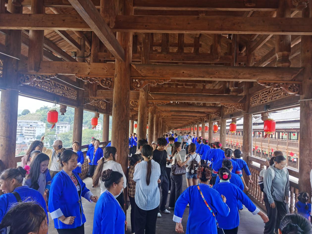 此次实践研学活动以“行知结合”为核心理念,实现了知识传授与价值引领的双重目标。学生们在博物馆中溯源文化根脉,在风雨桥上感悟匠心精神,在广场舞中体验文化活力,在村寨考察中思考产业创新,不仅深化了对专业知识的理解,更在真实场景中增强了文化自信与专业认同。