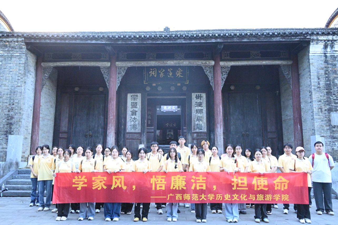 为深入学习中华优秀传统廉洁文化,厚植青年学子廉洁自律意识,10月17 日,学院组织独秀峰廉洁教育基地成员及本科生第一党支部、本科第三党支部党员代表,赴广西家教家风基地与江头古村,开展“学家风,悟廉洁,担使命”主题研学活动,实地感受廉洁文化底蕴与时代魅力。
