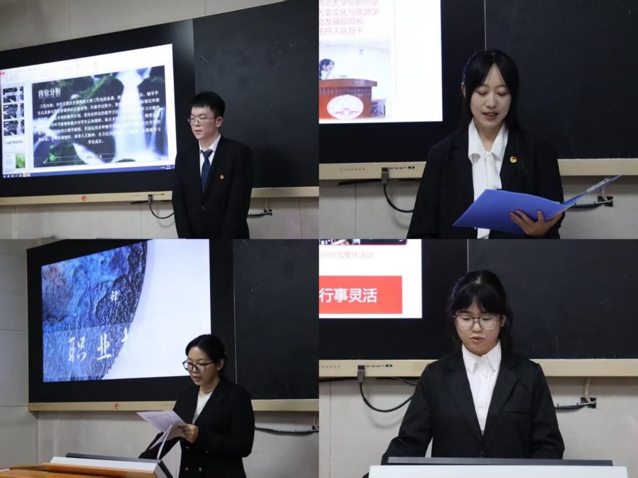 为积极响应国家关于加强大学生职业生涯教育的号召,引导学生树立科学职业规划理念,全面提升就业核心竞争力与未来职业发展能力,2025年10月20日下午,历史文化与旅游学院于王城校区第二教学楼203-3教室成功举办了“热心绘就青春色 蓝图铺展职业路”第三届全国大学生职业规划大赛。学院副教授刘超建老师、团委书记常诗悦老师、辅导员方春露老师共同出席并担任本次大赛的评委。